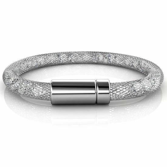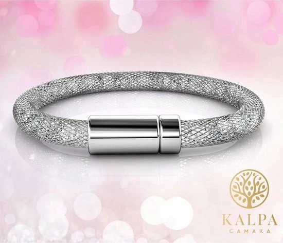 Yolora zilverkleurige mesh armband met รฉchte Kalpa Camaka kristallen.