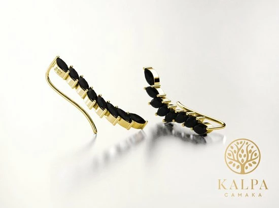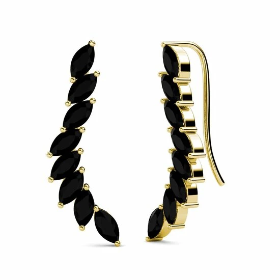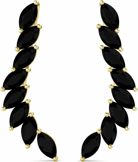 Yolora dames oorbellen met Γ©chte zwarte Kalpa Camaka kristallen. Deze oorbellen zijn gemaakt met een 18K geelgouden plating.