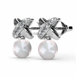 Yolora dames oorbellen met Kalpa Camaka parels en kristallen. Deze oorhangers zijn gemaakt met een 18K witgouden plating.