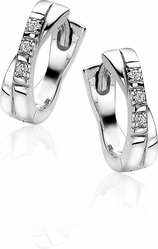 Beste Pirce β ZINZI Zilveren Oorringen 12x3mm Kruislings Wit ZIO2039 π